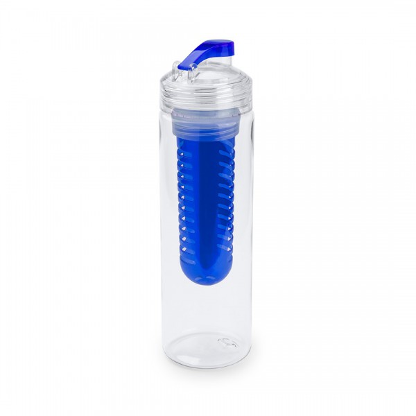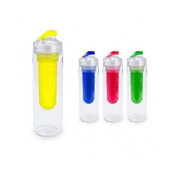 Botella o bidón de 700ml de capacidad con cuerpo de acabado en material tritán de resistencia al calor (70º). Con dosificador de seguridad y tapón a rosca con accesorio enfriador en vivos colores. Presentado en caja individual.