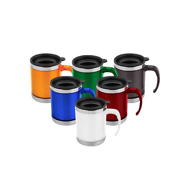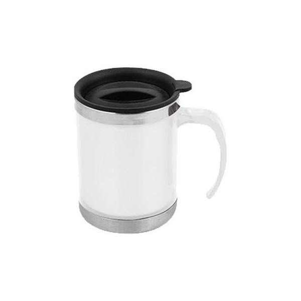 Mug térmico doble cámara con tapa de PVC con dosificador.