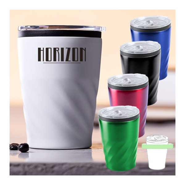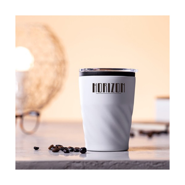 Vaso de 350ml en acero inox con diseño biselado.