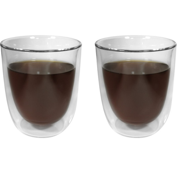 Vidrio. Set de vasos. Doble vidrio. Capacidad 280 ml cada vaso. Apto para bebidas frias y calientes.