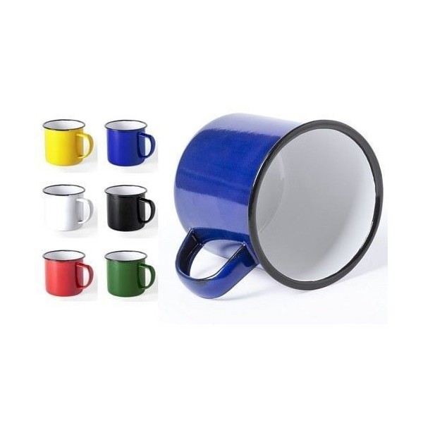 Taza metálica de 380ml de capacidad con diseño vintage y acabado con imperfecciones para mayor sensación retro.