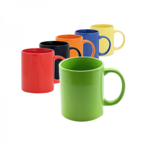 Taza de cerámica de 370ml de capacidad en divertida y amplia gama de vivos colores. Presentada en caja individual.