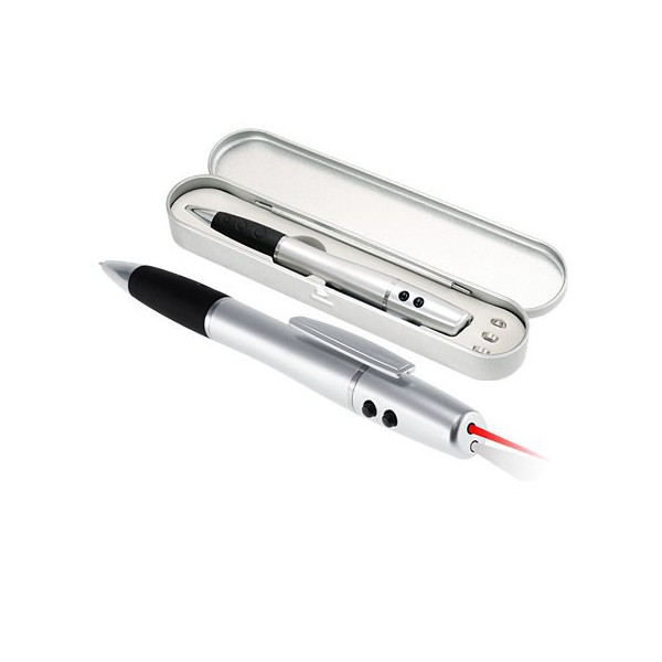 Bolígrafo plástico multi-función que incluye Lápiz, linterna Led y puntero Láser.