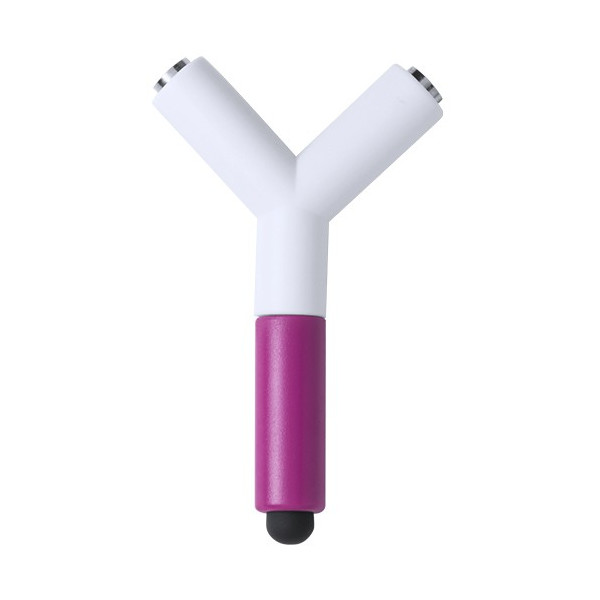 Adaptador jack de 3,5mm a doble salida jack de 3,5mm. De diseño minimalista y compacto, duplica la entrada/salida de audio de cualquier dispositivo de sonido con jack de 3,5mm. Con capucha puntero en variada gama de vivos colores.