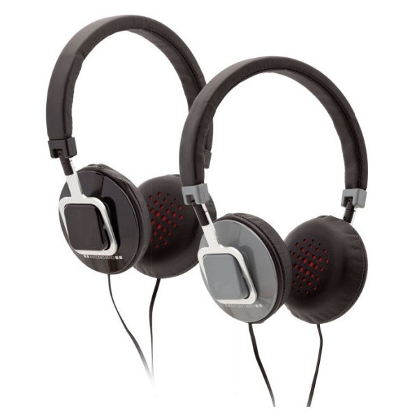 Audífonos de diseño minimalista en eco-cuero de color negro.