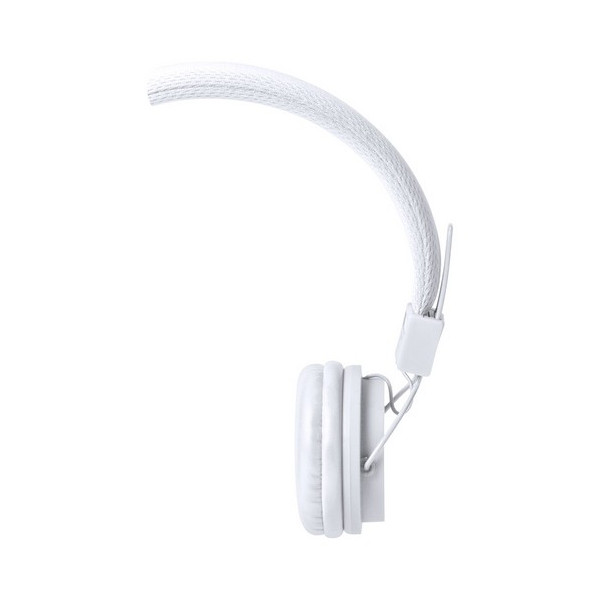 Audífonos ajustables con almohadillas de polipiel.