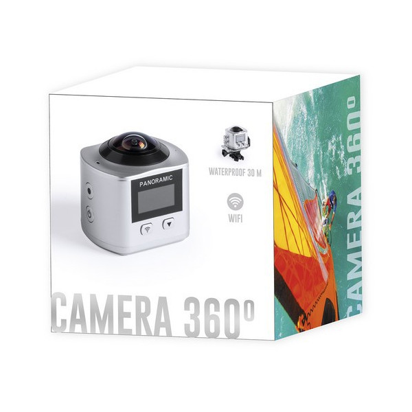 Cámara deportiva 360° de alta calidad de captura de vídeo HD 2448p, de diseño compacto y resistente, especialmente diseñada para uso intensivo. Incluye carcasa sumergible y multitud de accesorios para ajuste en casco, manillar o cinturón, así como correas ajustables para cabeza y torso. La versatilidad y resistencia de esta cámara deportiva la convierten en el gadget perfecto para capturar, con una calidad excepcional, cualquier actividad deportiva o de ocio en 360°. Con función Wi-fi, cámara de fotos Full HD 1080p, ranura para tarjetas micro USB de hasta 64 GB de capacidad, pantalla LCD de 0,96 pulgadas, sistema multilenguaje, y recargable mediante cable mini USB -incluido-. Presentada en atractiva caja de diseño.