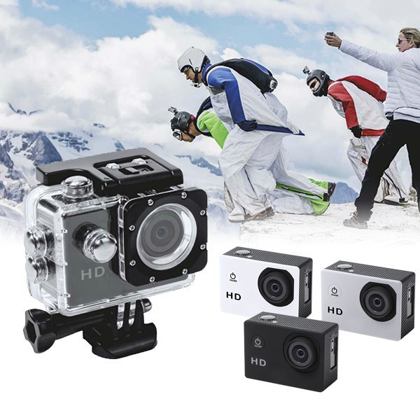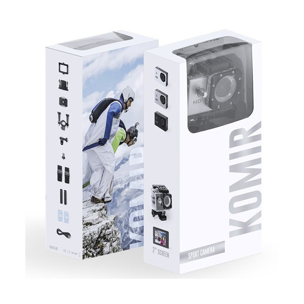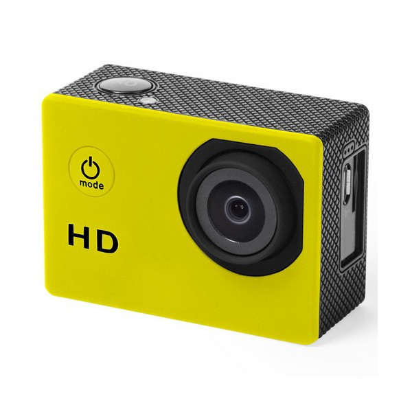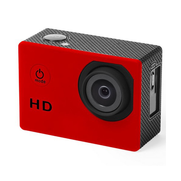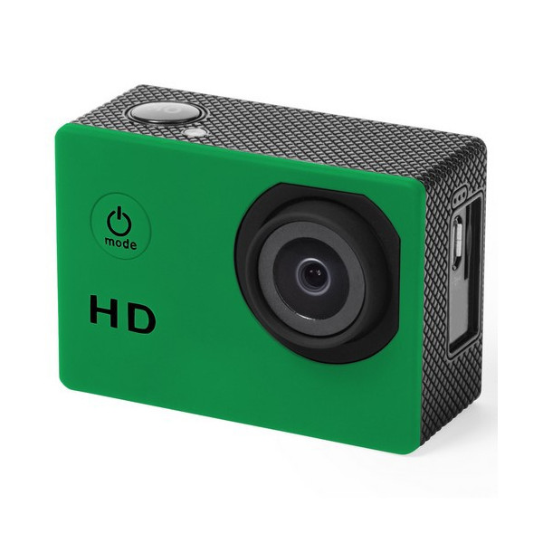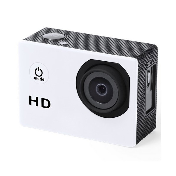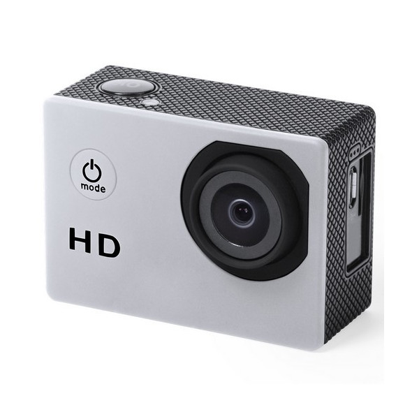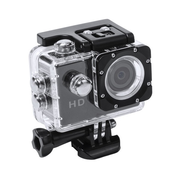 Cámara deportiva de alta calidad de captura de vídeo HD 720p, de diseño compacto y resistente, especialmente diseñada para uso intensivo. Incluye carcasa sumergible hasta 30m de profundidad y multitud de accesorios para ajuste en casco, manillar o cinturón, así como correas ajustables para cabeza y torso o un adaptador giratorio de 360º. La versatilidad y resistencia de esta cámara deportiva la convierten en el gadget perfecto para capturar, con una calidad excepcional, cualquier actividad deportiva. Con función cámara de fotos Full HD 1080p, ranura para tarjetas micro USB de hasta 32 GB de capacidad, sistema multilenguaje, y recargable mediante cable microUSB -incluido-. Presentada en atractiva caja de diseño.