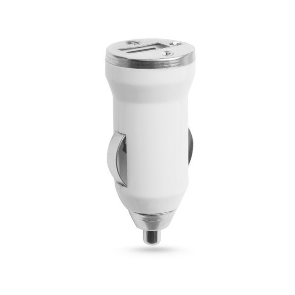 Cargador USB automovil de 1.000 mA con tapa metalizada.