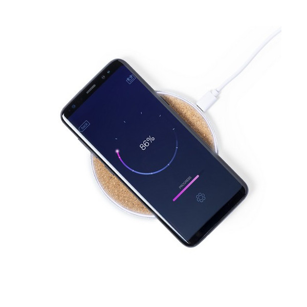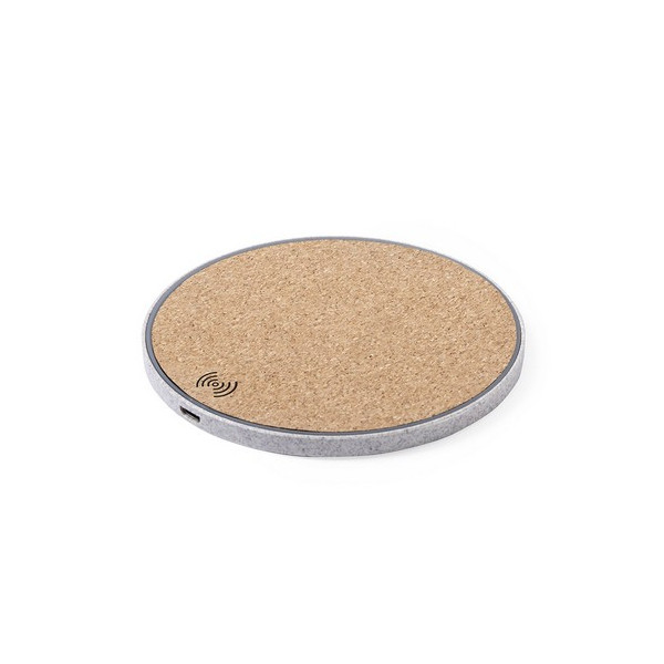 Cargador inalámbrico 5W de Eco-natura y diseño circular en corcho y caña de trigo.