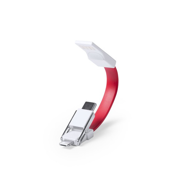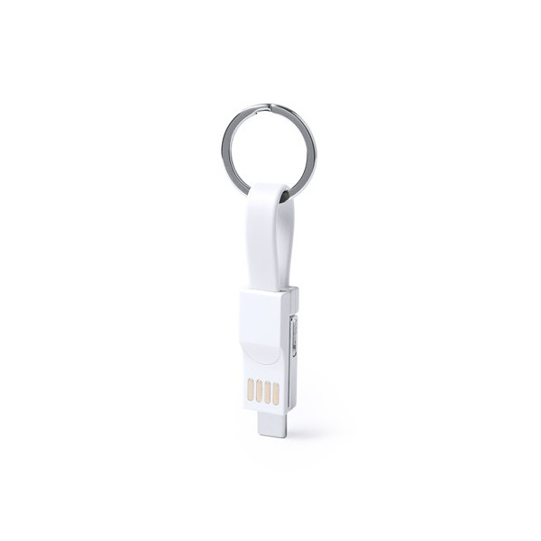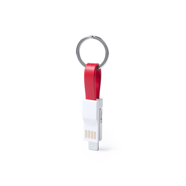 Cargador sincronizador magnético con cuerpo en variada gama de colores. Conexiones tipo C y dual micro USB/lightning. Con anilla para transporte. Presentado en atractiva bolsita de diseño.