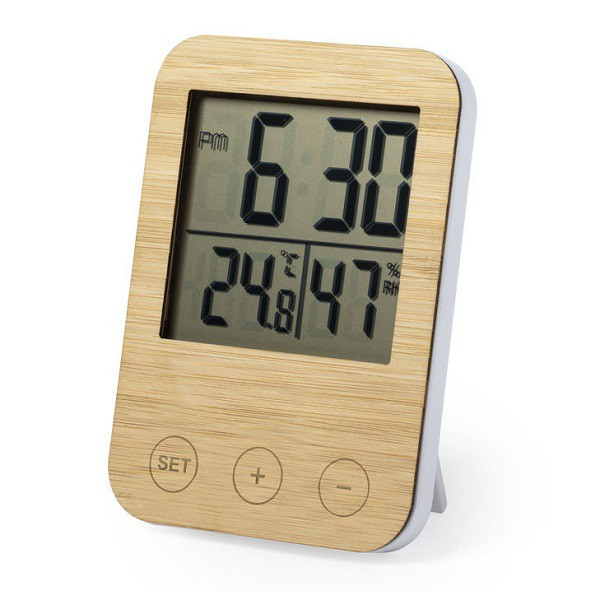 Estación meteorológica de línea ecológica con frontal en bambú.