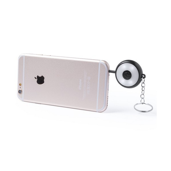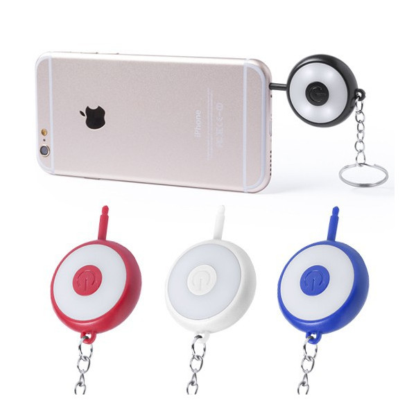 Módulo de flash de 4 ledes compatible con cualquier tipo de dispositivo móvil, con accesorio de anclaje a smartphone tipo jack de 3,5mm, especialmente diseñado para la captura de vídeos. Con accesorio llavero para transporte. Pilas de botón incluidas.