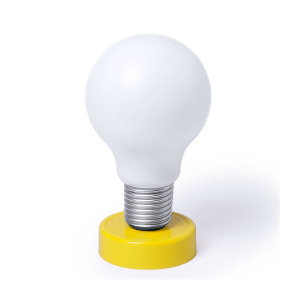 Lámpara de sobremesa de 13cm de diámetro con tecnología led, atrevido diseño de bombilla y sólido pie en divertidos colores. Alimentación a pilas: tipo AA no incluidas y presentada en atractiva caja de diseño.