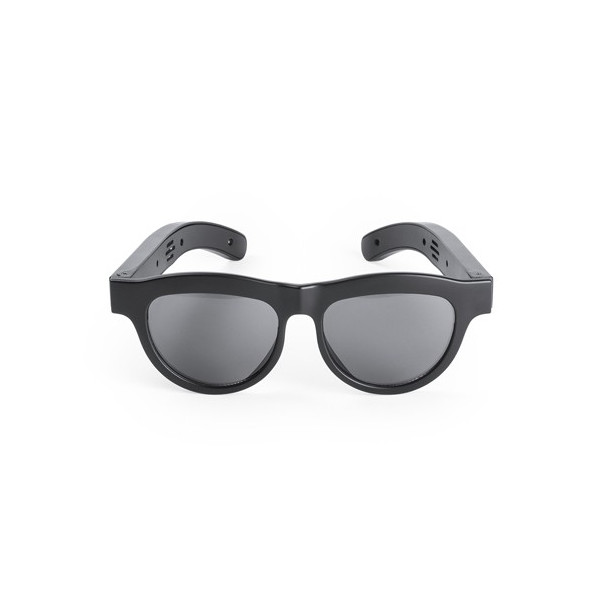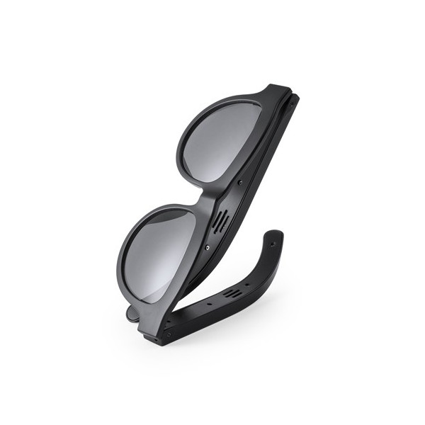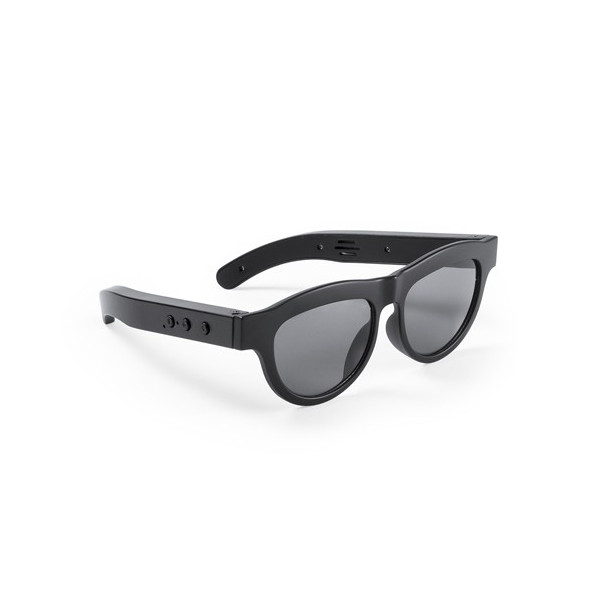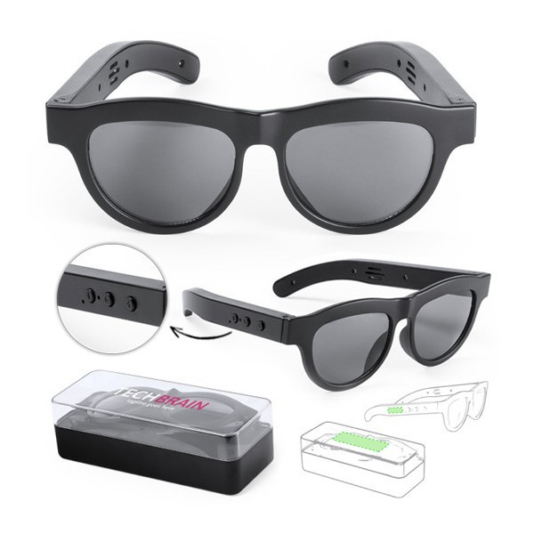 Gafas de sol con protección UV400 y altavoz bluetooth integrado. Diseño ultradelgado, con botones de control en la patilla. 1W de potencia, con función manos libres. Recargables mediante cable USB -incluido-. Presentado en resistente funda con tapadera transparente.