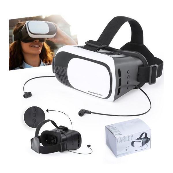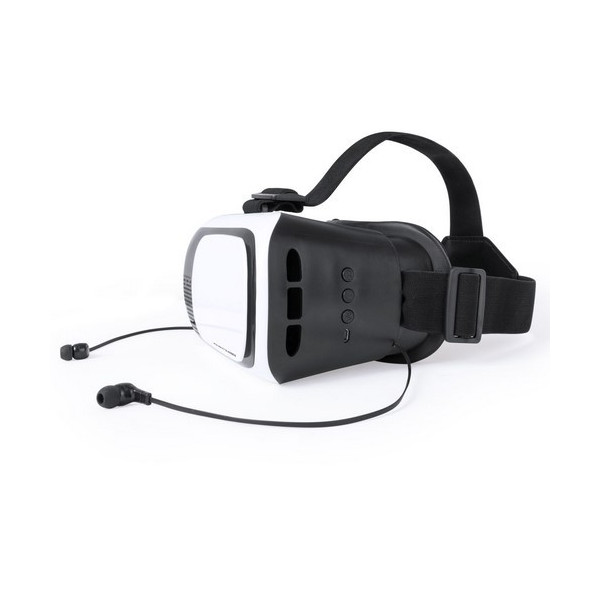 Gafas de realidad virtual con conexión bluetooth y auriculares incluidos para una experiencia de realidad virtual completa. Indicadas para vídeos 3D y 360º, recargables mediante cable USB -incluido-, con lentes y bandeja ajustables para todo tipo de smartphones. Conexiones de entrada de audio jack de 3,5mm y panel de control lateral con botones de ajuste de volumen y reproducción de vídeos. Con cómodas cintas elásticas ajustables para la cabeza y suave recubrimiento de polipiel alrededor de la zona de los ojos para mayor confort. Amplia superficie de marcaje frontal. Presentadas en atractiva caja de diseño.