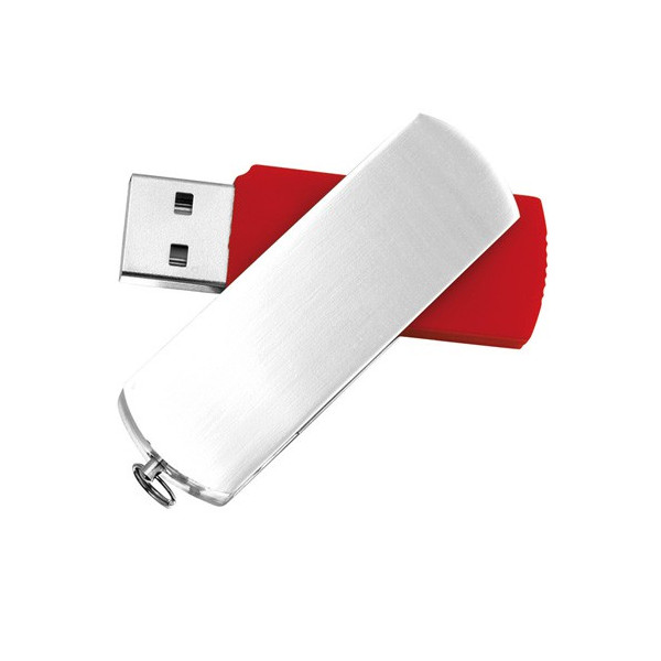 Memoria USB de 8GB de capacidad, con mecanismo giratorio, cuerpo de suave acabado y clip metálico en acabado mate. Presentada en estuche individual de PVC y suave espuma troquelada.