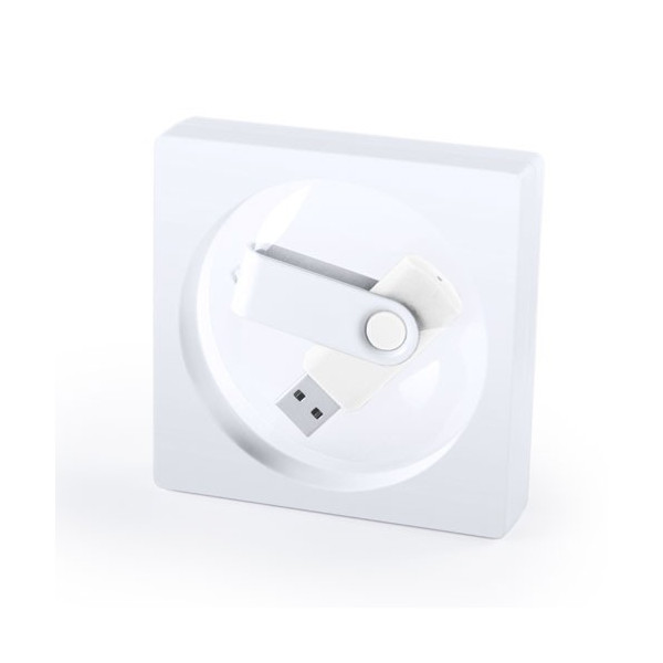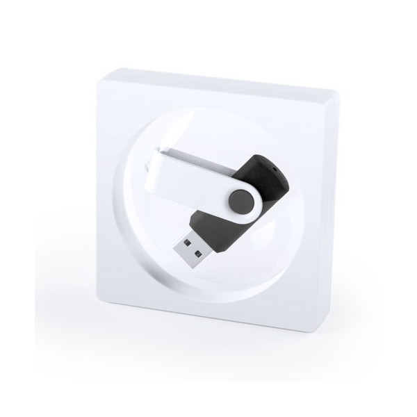 Memoria USB de 8GB de capacidad, con mecanismo giratorio, cuerpo de suave acabado y clip metálico blanco en acabado brillante. Presentada en estuche film individual.