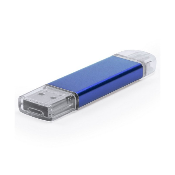 Memoria USB de 8GB de capacidad. Con conexiones dual USB/micro y tipo C integradas. De diseño minimalista y elegante acabado en aluminio brillante. Compatible con dispositivos móviles Android con funcionalidad OTG. Presentada en estuche individual.
