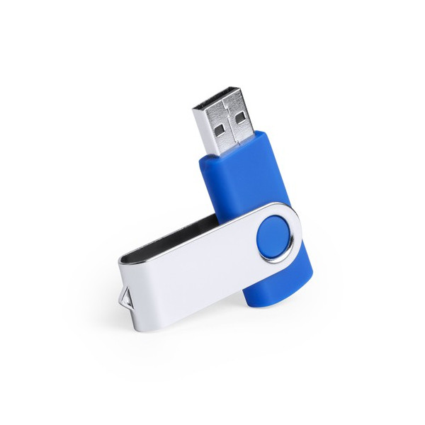 Memoria USB 32GB - 64GB con mecanismo giratorio, cuerpo de suave y clip metálico.