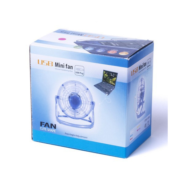 Atrevido mini ventilador de escritorio con conexión USB en divertidos colores. De compacto y resistente diseño, incorpora interruptor en la parte trasera, además de una generosa zona central para impresión en tampografía o gota de resina. Presentado en atractiva caja de diseño.