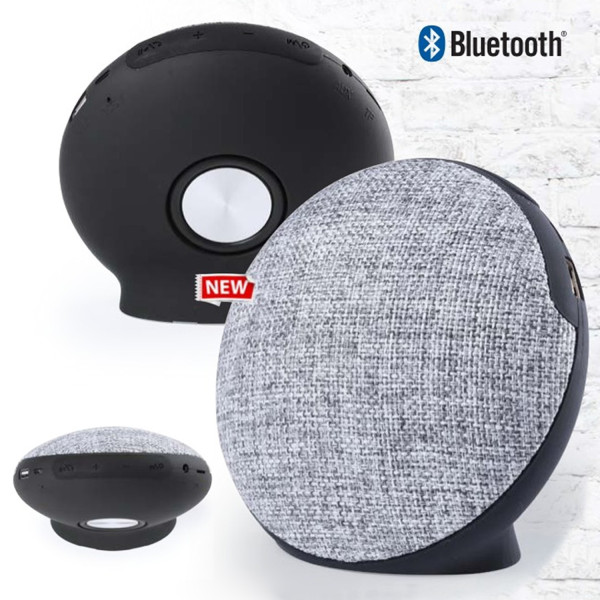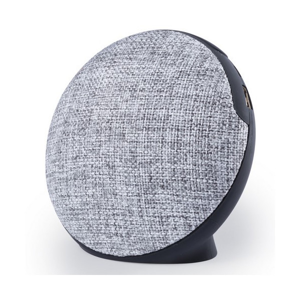 Altavoz de conexión Bluetooth. En tejido de poliéster de acabado bicolor y con cuerpo en suave acabado goma. Ofrece 3W de potencia, tiene función de manos libres, una ranura para tarjetas mini SD de hasta 32 GB de capacidad y entrada auxiliar de línea mediante conexión jack de 3,5mm. Compatible con iOS y Android, incluye cable de carga mini USB, cable auxiliar jack de 3,5mm y viene presentado en atractiva caja de diseño. Con soportes de goma antideslizantes en la base.