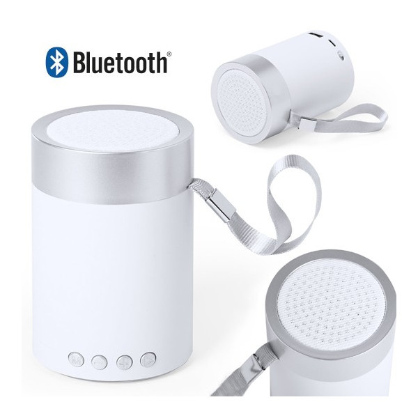 Altavoz de conexión Bluetooth de diseño bicolor, con rejilla en color blanco y asa de transporte. Con conexión Bluetooth 4.2, ofrece 3W de potencia, tiene función de manos libres, reproductor USB, ranura para tarjetas micro SD y función radio FM. Entrada auxiliar de línea mediante conexión micro USB a jack de 3,5mm y base antideslizante. Compatible con iOS y Android, incluye cable de carga micro USB. Presentado en atractiva caja de diseño.