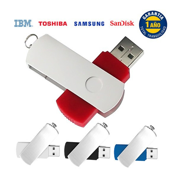 Chips Toshiba, IBM, Samsung, Sandisk. Garantia de 1 año. Caja cartón incluida en el precio. Actualización de precios todas las semanas.Valor incluye logo en una posición en láser o impresión máximo 2 colores.