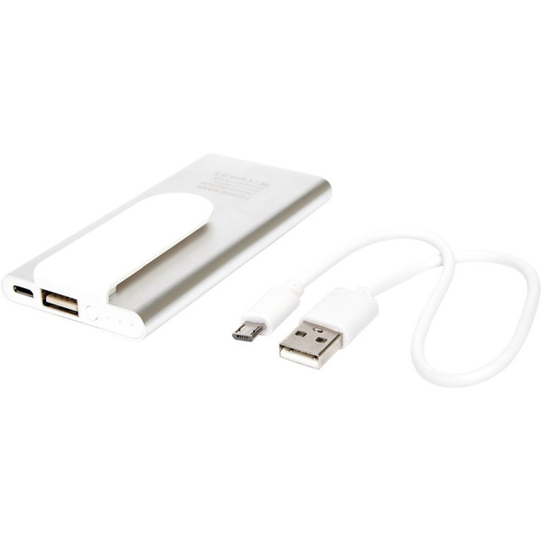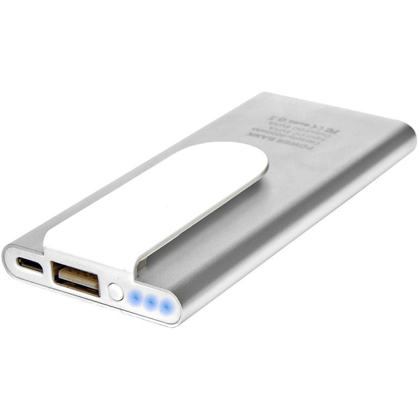 Capacidad 3000 MAH. Metal. Cargador móvil para celular, Ipad, Ipod, Mp3, Mp4 y cámaras digitales. Un puerto USB y un mini puerto USB. Luces indicadoras de nivel de carga. Con clip sujetador. Con certificación de calidad.