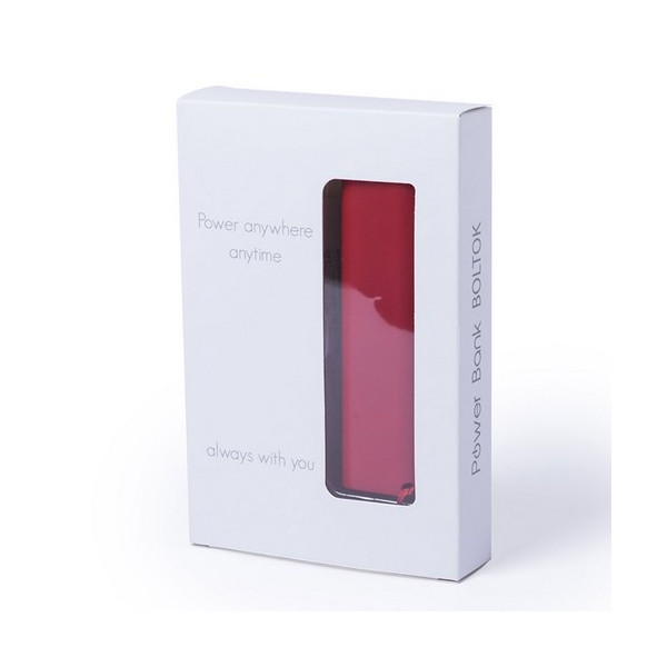 Batería auxiliar externa de 1.200 mAh de capacidad en llamativos colores. Indicador led de estado de carga y amplia superficie de marcaje. Con cinta de transporte a juego y presentada en atractiva caja de diseño. Las capacidades mostradas en todas nuestras baterías auxiliares externas son reales, incorporando todas ellas baterías de grado A y no recicladas, con una vida útil de al menos 500 ciclos de carga y según normativa CE. Además, están fabricadas conforme a los estándares RoHS y en cumplimiento con los siguientes requisitos de seguridad: Sistema de protección contra sobrecarga del power bank. Sistema de protección contra descarga completa que proporciona una mayor durabilidad del power bank. Sistema de bloqueo para evitar cortocircuitos. Sistema de transferencia de carga constante, acorde con la capacidad del dispositivo de destino.
