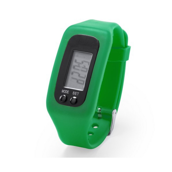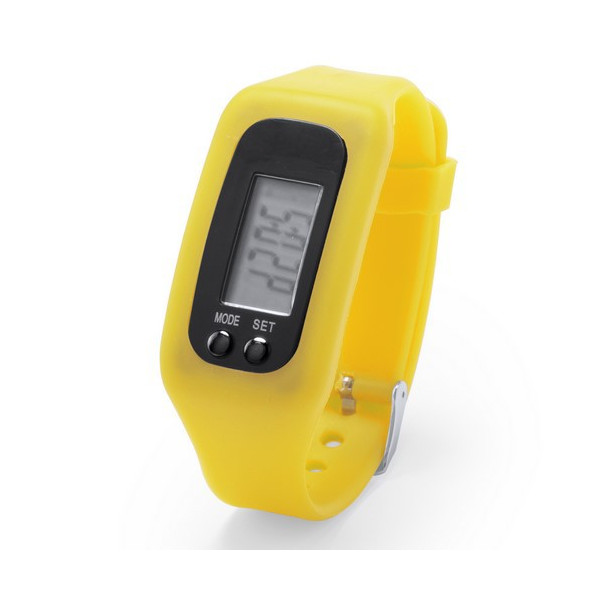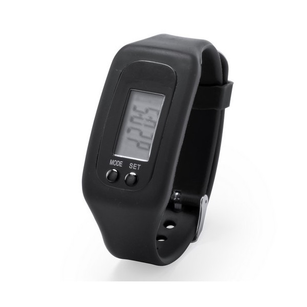 Reloj digital deportivo con pantalla LCD rectangular.