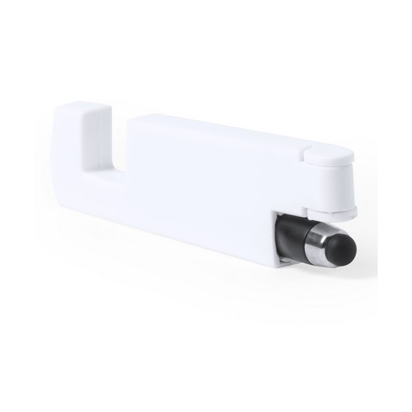Original soporte plegable para dispositivo móvil en elegante acabado blanco y con miniBolígrafo - Lápiz puntero integrado en base.