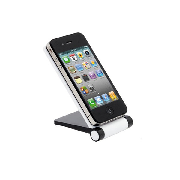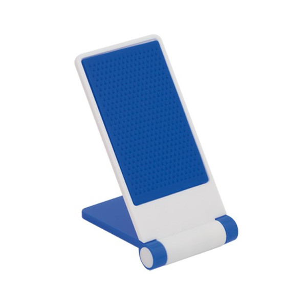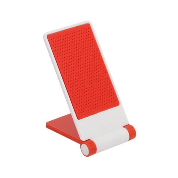 Original soporte plegable para smartphone con superficie adherente en original diseño bicolor, base antideslizante y soporte a juego.