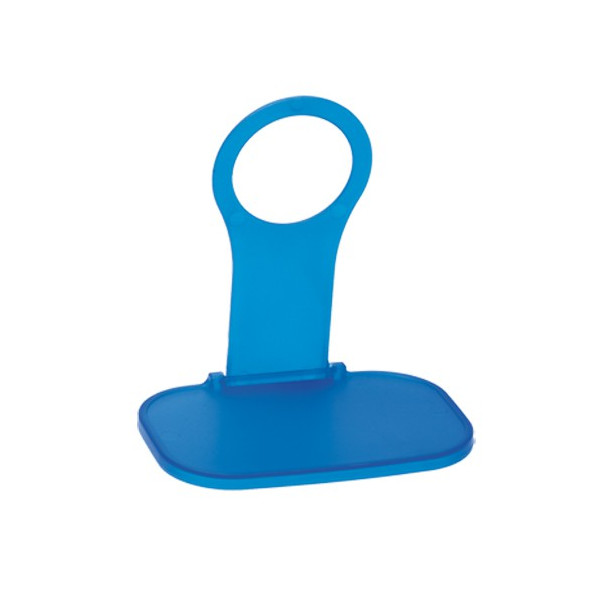 Original soporte plegable para acople en toma de corriente de pared. Cuerpo en acabado translúcido y especialmente diseñado para marcaje en tampografía.