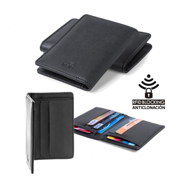 Tarjetero de seguridad RFID de diseño suave y ecocuero negro.