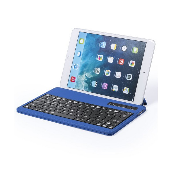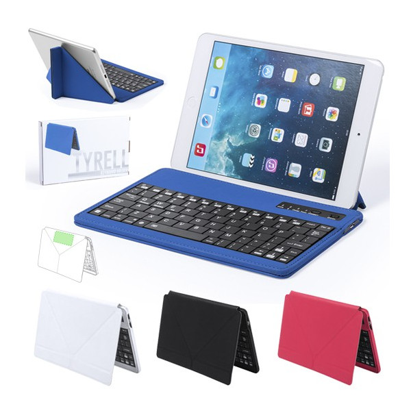 Teclado Bluetooth con función soporte para tablet en suave acabado de polipiel. De diseño compacto, en atrevidos colores y recargable mediante cable mini USB -incluido-. Compatible con cualquier sistema operativo y presentado en atractiva caja de diseño.