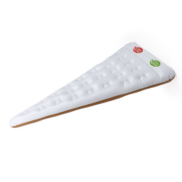 Original colchoneta inflable en PVC de tamaño maxi y en forma de porción de pizza.