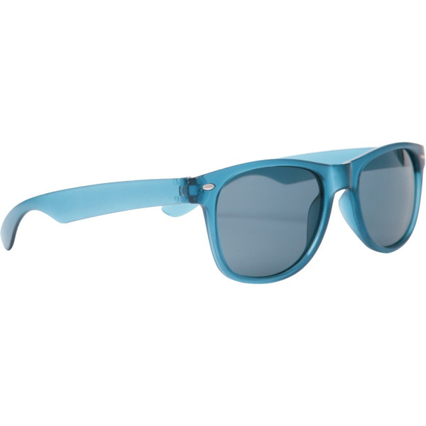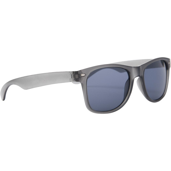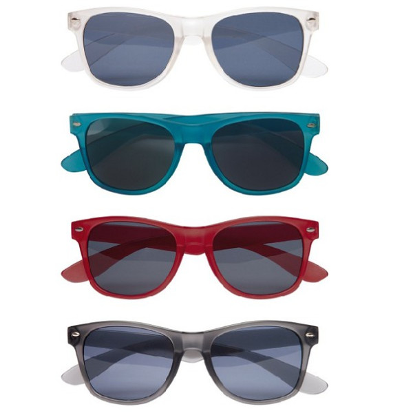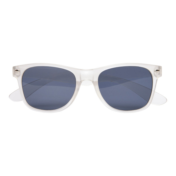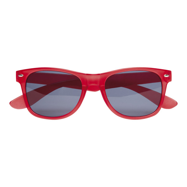 Unico talle. Gafas de sol de cristal oscuro sobre armazón de plástico. Certificado UV 400, clase 3. Amplio espacio de impresión.