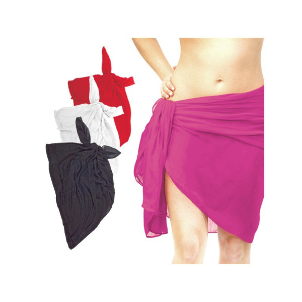 Suave pareo en combinación de materiales viscosa y poliéster de vivos colores.