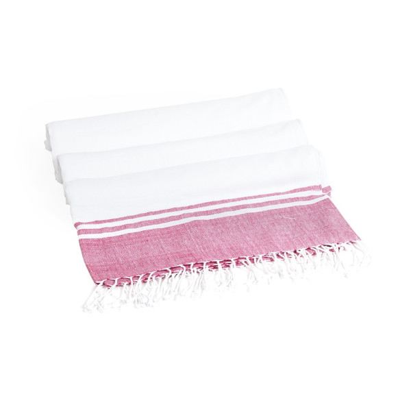 Pareo toalla 2 en 1 en combinación de materiales algodón y poliéster de 180g/m2 en vivos colores. Cara posterior absorbente con acabado en rizo.