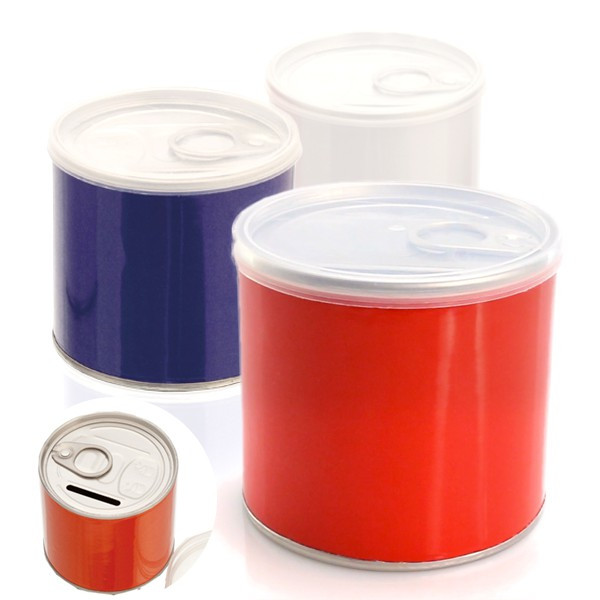 Alcancía metálica brillante.