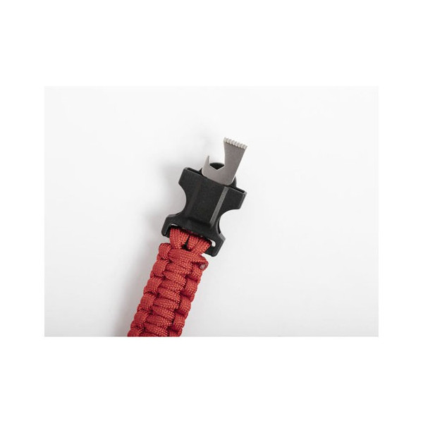 Brazalete multifunción para los más aventureros en resistente nylon. 5 funciones: brazalete, brújula, silbato, cuchillo rascador y abridor. Disponible en variada gama de colores, con cierre de hebilla de seguridad.