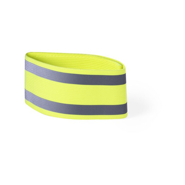 Brazalete reflectante en poliéster y elastano con bandas reflectantes.