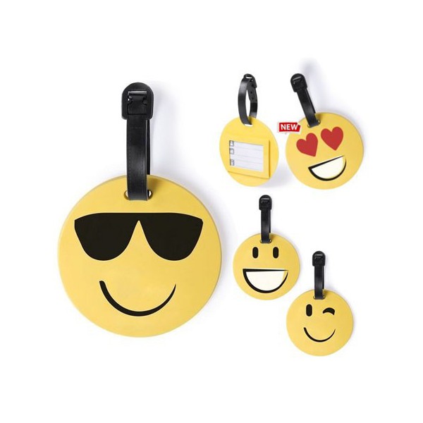 Identificador de divertidos diseños emoji en llamativo color amarillo.
