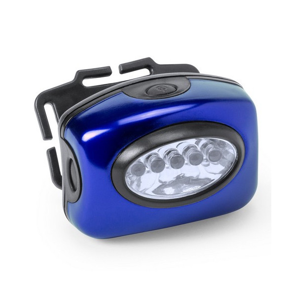 Linterna para cabeza de 5 ledes con tres modos de iluminación. Con cómoda cinta elástica ajustable y desmontable y cuerpo en resistente material en vivos colores. Alimentación a pilas: 3xAAA no incluidas. Presentado en caja individual plateada con bolsa de protección de burbuja.