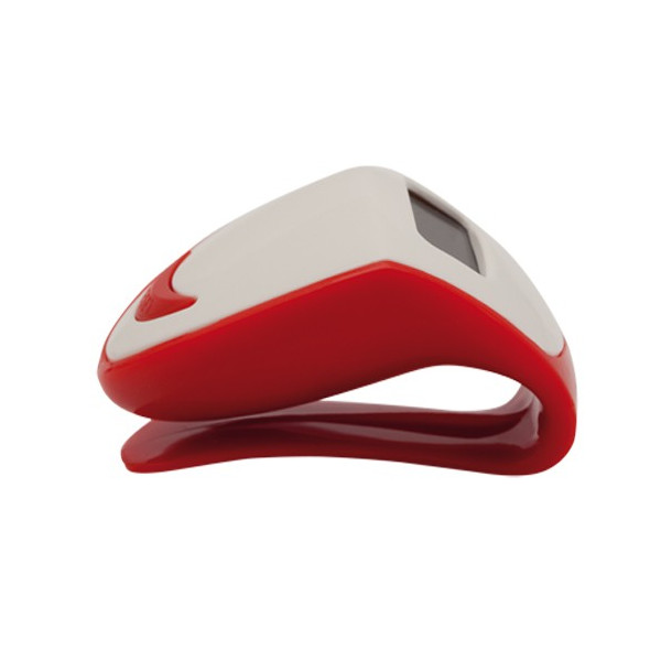 Contador de pasos en diseño bicolor y pinza de fijación.