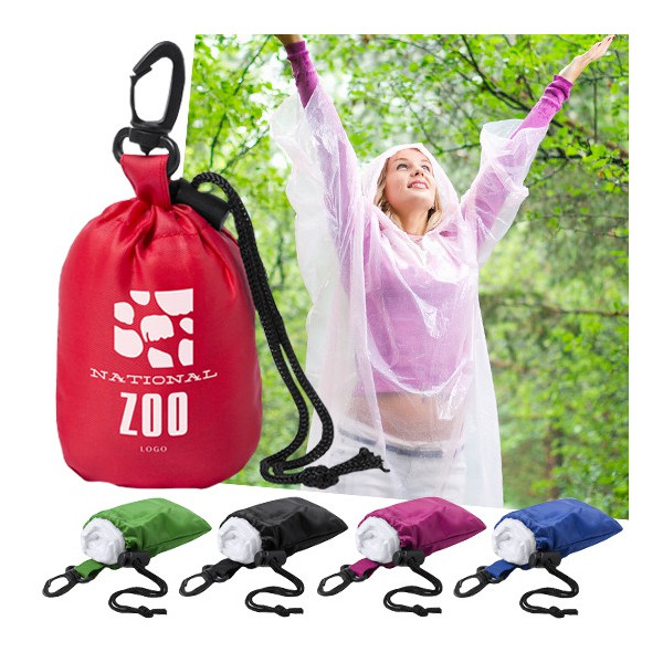 Poncho para adulto en material LDPE. En medidas 120x95cm y presentado en funda de poliéster en variada gama de vivos colores, especialmente diseñada para marcaje. Bolsa con cordón auto cierre con accesorio de ajuste y mosquetón de transporte.Talla única.