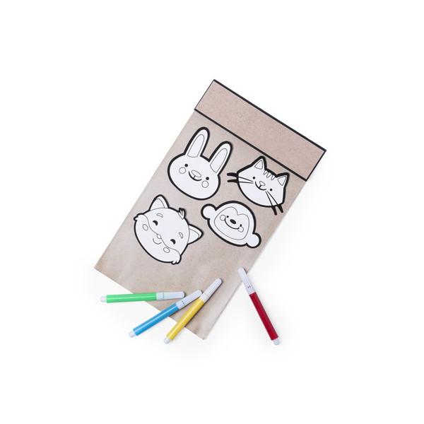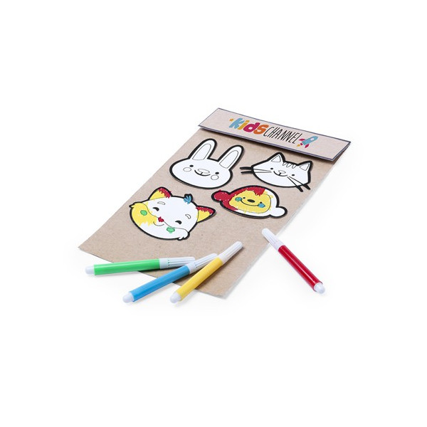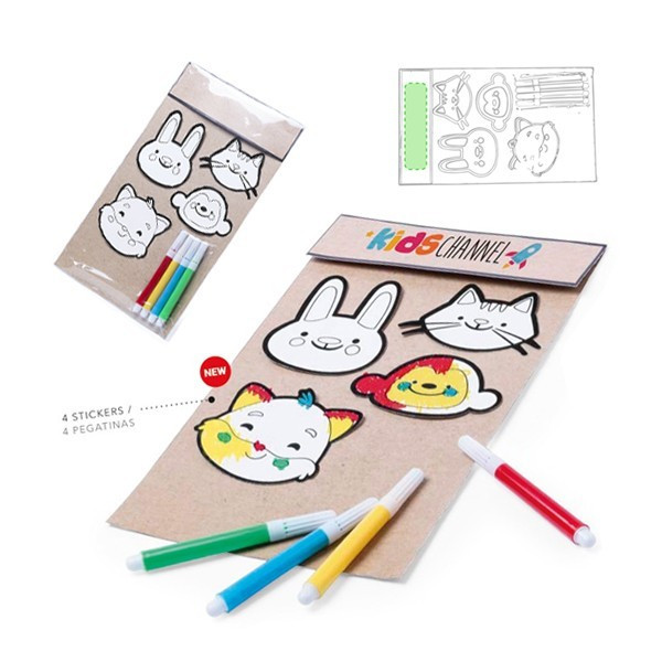 Set infantil para colorear con 4 pegatinas y 4 rotuladores.