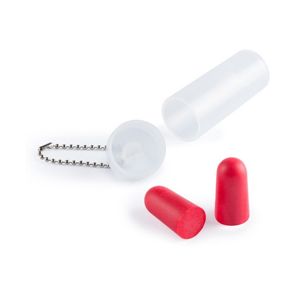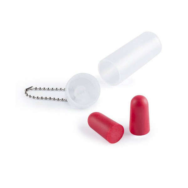 Confortables tapones para oídos en confortable material EVA de vivos colores. Presentados en estuche individual transparente con cadenita de transporte