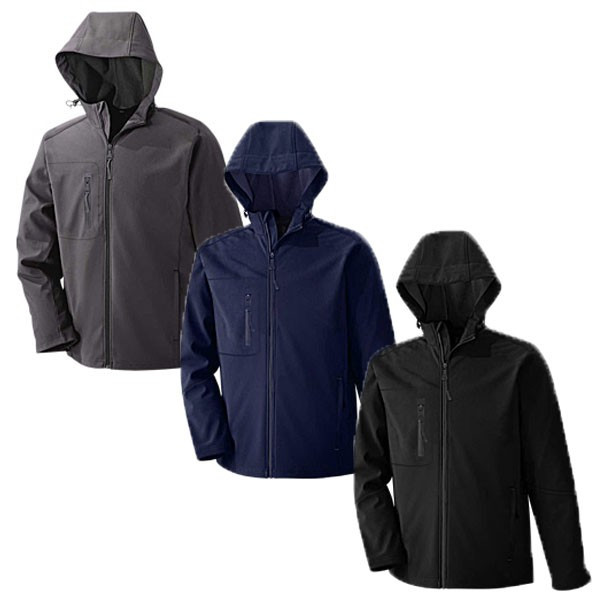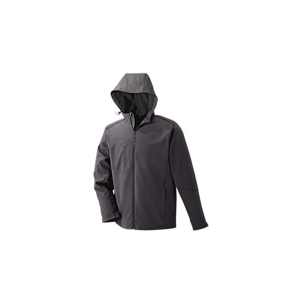 Chaqueta Softshell "IMAGEN" 100% poliéster de 320gr/m2 con gorro (capucha), para HOMBRE, manga larga. Contiene bolsillo interior para esconder reverso del bordado y cierres impermeables (principal y bolsillos). Presentación individual en bolsa de polipropileno transparente. Tallas XS a XL.